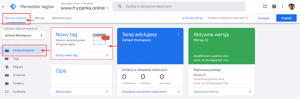 - Opublikuj zmiany w Gogle Tag Manager